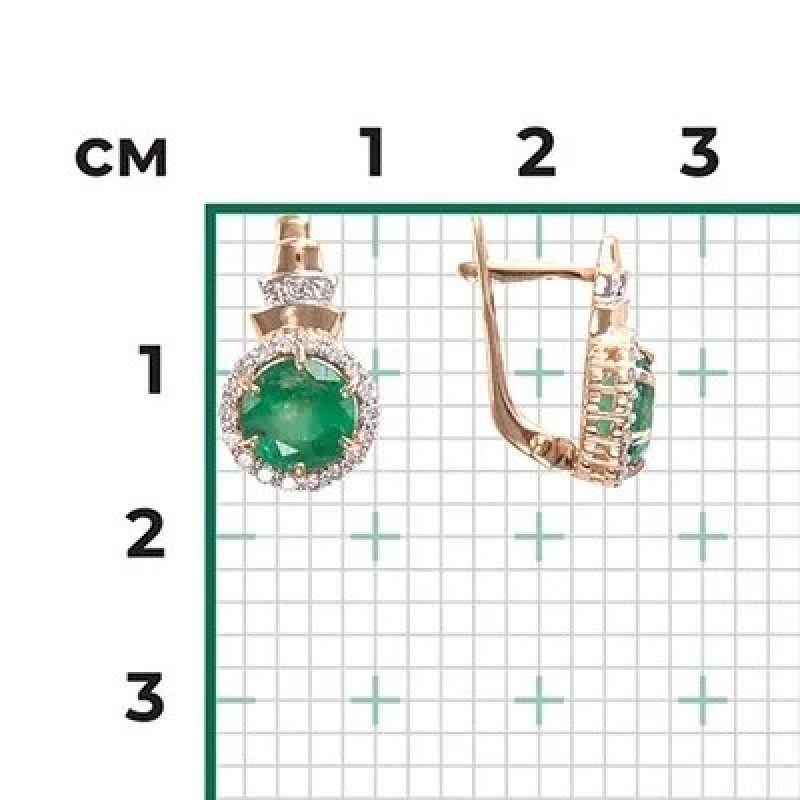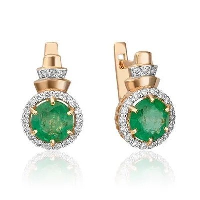 PLATINA Серьги с английским замком из красного золота 585 пробы c изумрудом и бриллиантами