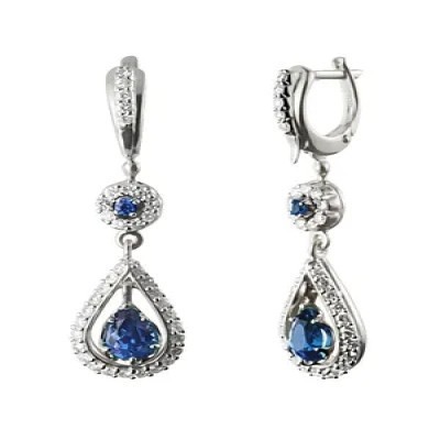 G.st. ЮВЕЛИРНЫЙ ЗАВОД ЗОЛОТОЙ СТАНДАРТ Серьги из белого золота с натуральными сапфирами и бриллианта