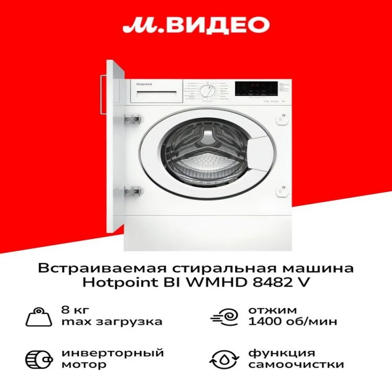 Встраиваемая стиральная машина Hotpoint BI WMHD 8482 V оснащена барабаном объемом 55 л и люком